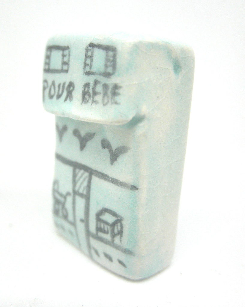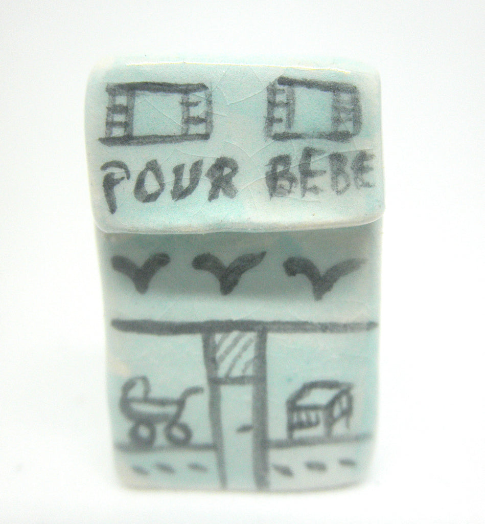 This French baby shop is hand made in ceramic, hand painted and signed. It is 7/8 inch high, 5/8 wide and 5/16 deep. It would be perfect in a 1/12 scale dollhouse or as a collector's item. The last picture shows a row of French shops. Each is sold individually.
