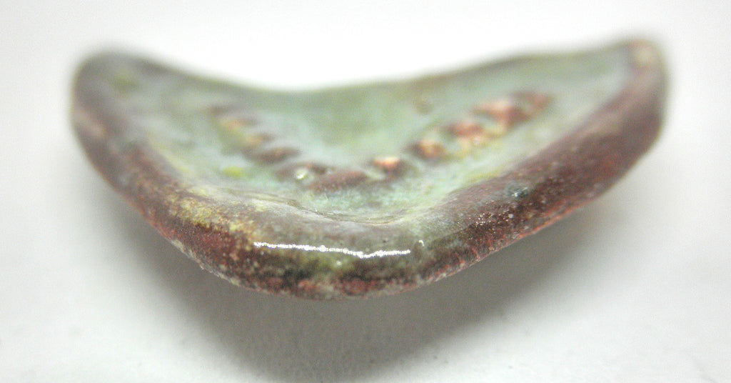 This handmade Mid Century ceramic ashtray has a raised foot. It is 1 inch wide from tip to tip, and each side is about 1 inch long.