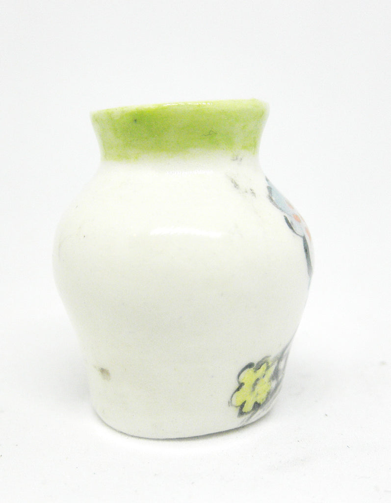 The vase is hollow and 1 inch high and 3/4 inch wide. It will make a great addition to an art deco or modern miniature scene, displayed on a shelve, a coffee table on a living room buffet.