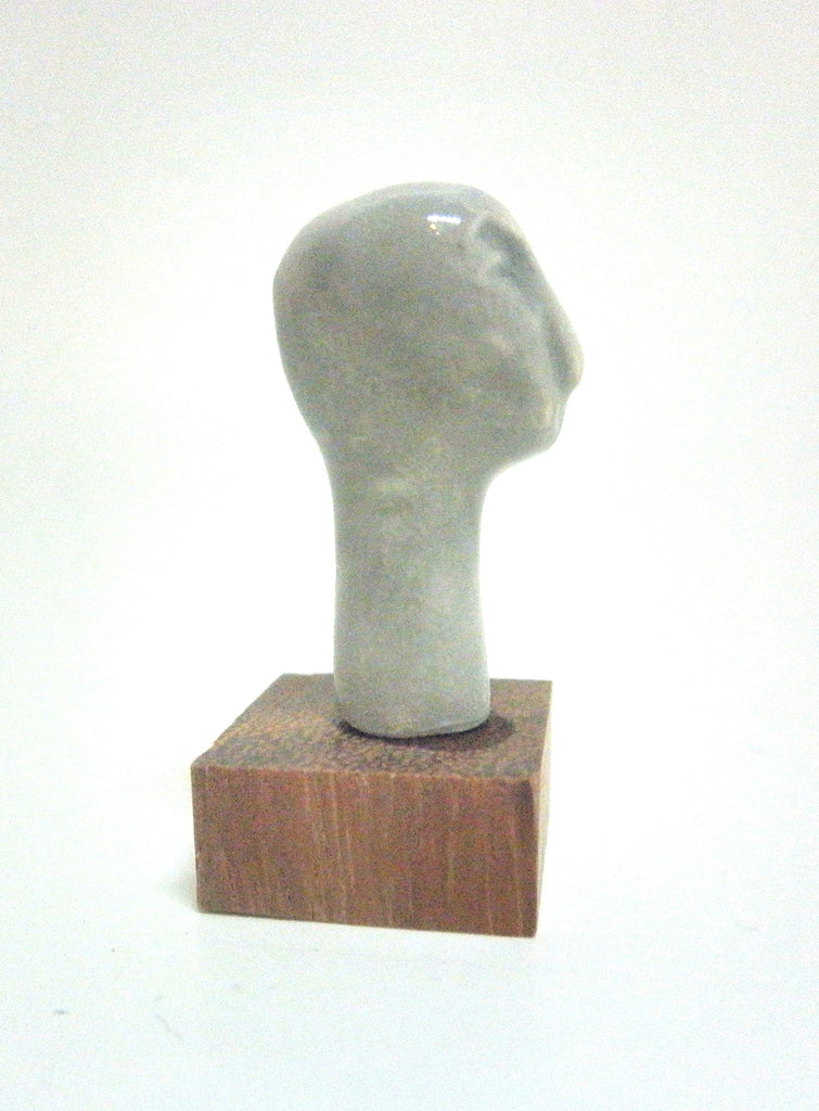 This original hand sculpted modern sculpture id mounted on a wood base and stands 1 5/8 inch high by 5/8 wide and 1/2 inch deep. For the eclectic collector.
