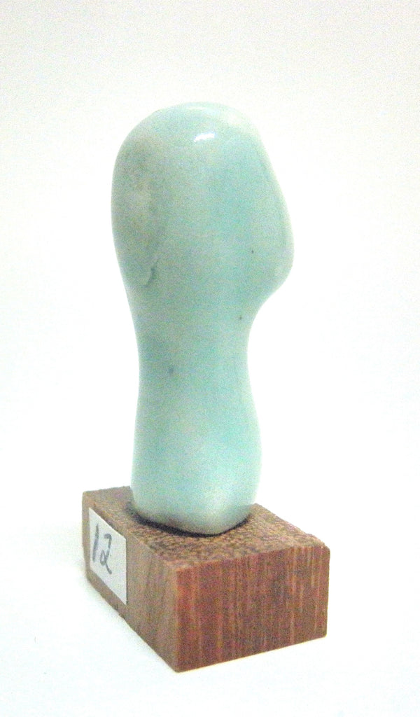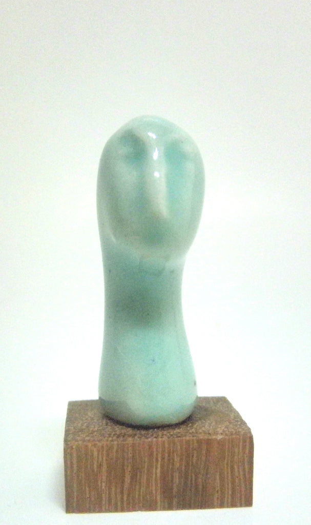 This original hand sculpted modern sculpture id mounted on a wood base and stands 1 5/8 inch high by 5/8 wide and 1/2 inch deep. For the eclectic collector.