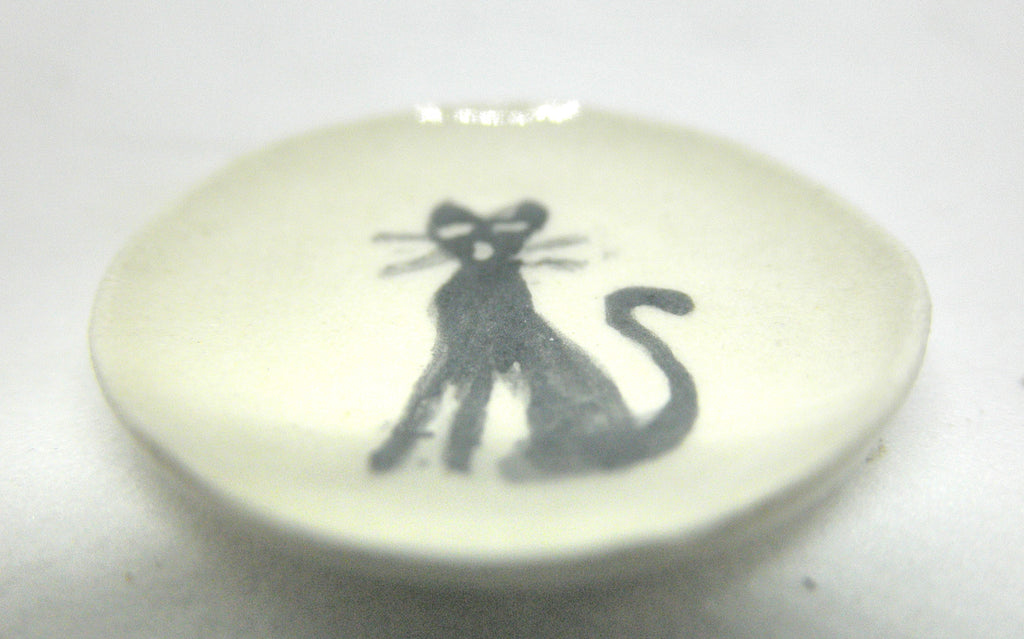 This handmade, signed and hand painted ceramic plate is perfect for cat lovers. It is almost paper thin and is 3/4 inch in diameter.
